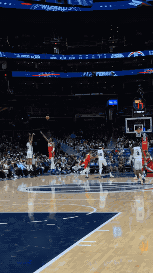 巴特勒面对保罗的防守,用几乎站投的方式命中三分。