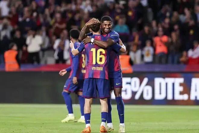 开赛之后巴萨迅速就进入状态,这一点的确是可喜的,看的出他们对比赛的认真。第9分钟在高压逼抢之下对手在出球时失误,给巴萨打出了迅速反击的机会。巴尔德抢截后给到了亚马尔,拿到了射门机会的年轻人一扣一射在时机上的确是淋漓尽致的展现了自己的天赋的,确实很有实力。